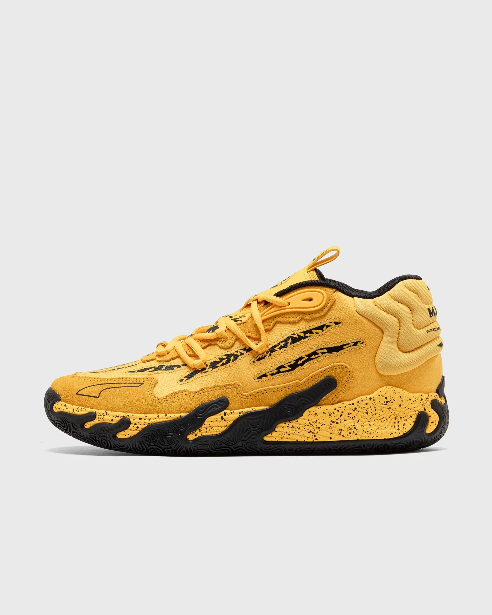 The third signature shoe from Puma x LaMelo Ball - the MB.03 - takes you on a journey into the unknown universe of the Melo world. The MB.03 features a knitted upper with cut-outs, a striking sole and the futuristic PUMA Hoops Tech. - NITRO Infused: The innovative nitrogen-infused foam technology offers excellent responsiveness in a featherweight package - Technical mesh upper with seamless design and multi-zone material for targeted support, breathability and comfort - TPU heel clip - Slip and abrasion resistant rubber outsole Article number: 309847-01 Gender: men Color: SPORT YELLOW-PUMA BLACK Material: Upper material: 100% Synthetic/Textile