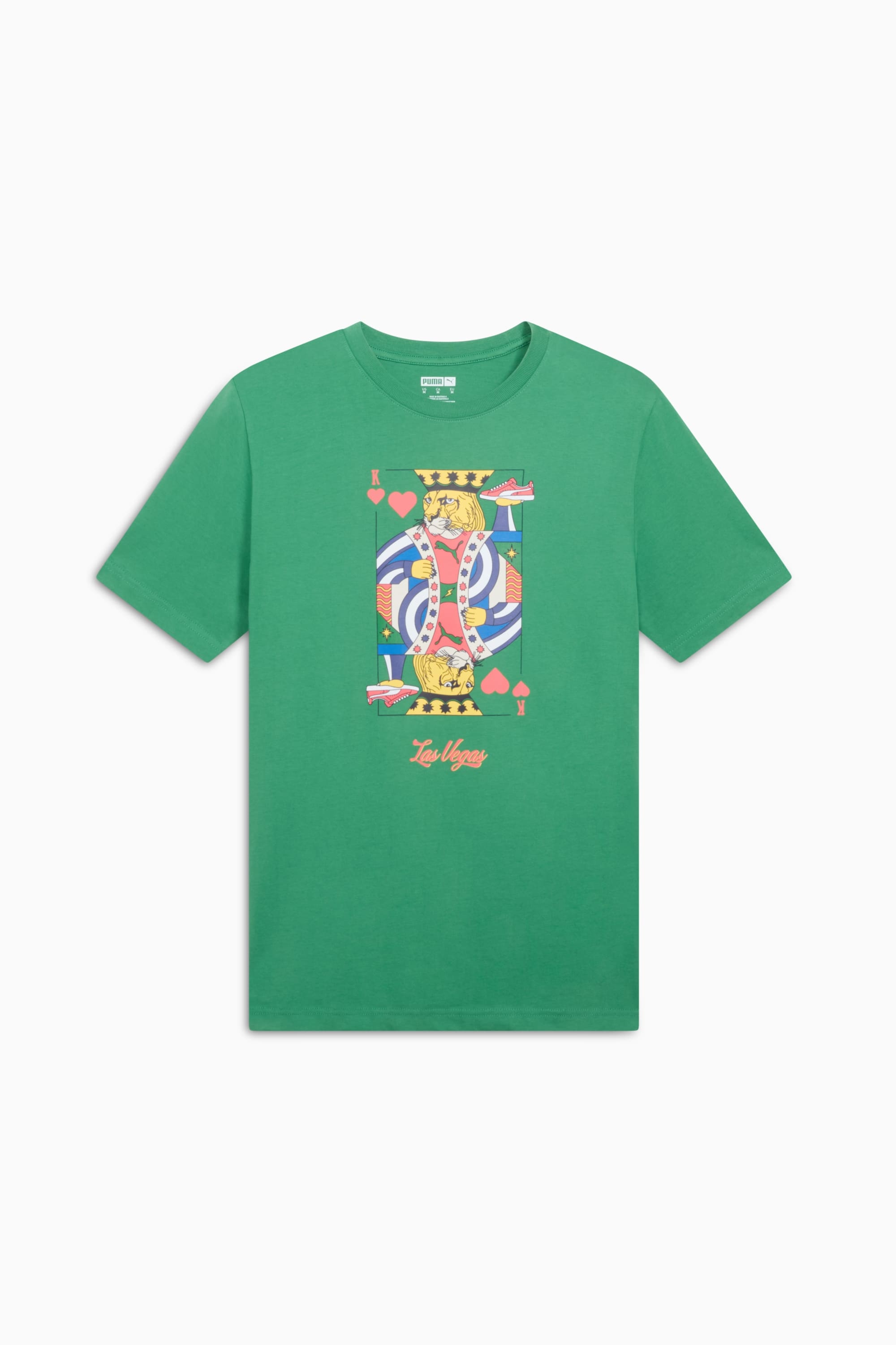 PRODUCT STORY For those who want their style to be as infamous as the city itself, this Las Vegas-inspired tee is sure to turn heads. PUMA branding gives this 100% cotton tee its signature look, while a cool colorway adds a pop to any fit. DETAILS - Style: 633214_86 - Color: Archive Green - 100% cotton - Short sleeves - Crew neck - Regular fit - PUMA branding details