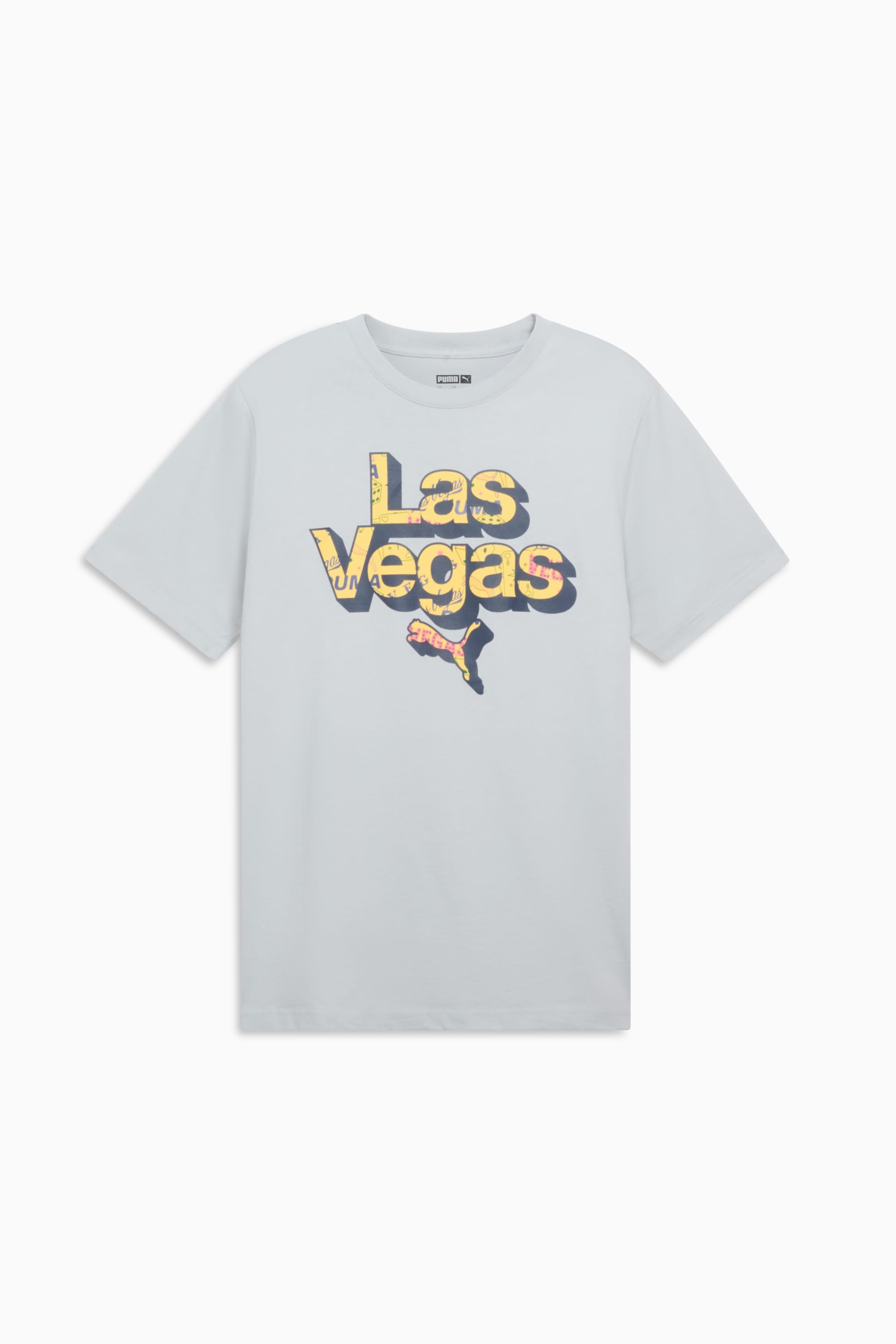PRODUCT STORY Rep your favorite city in PUMA style with this tee, crafted from 100% cotton for a comfortable fit. Las Vegas graphics give this tee its signature look, while a cool colorway adds a splash to any wardrobe. DETAILS - Style: 633213_10 - Color: Flat Light Gray - 100% cotton - Short sleeves - Crew neck - Regular fit - PUMA branding details