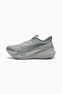 PRODUCT STORY Feel the bounce with the MagMax NITRO™ 2. Packed with the highest stack of NITROFOAM™ cushioning, it delivers an ultra-plush ride that energises every step. The engineered mesh upper keeps things cool and secure, while the PUMAGRIP outsole provides steady traction. Mile after mile, these shoes bring effortless comfort and performance. FEATURES & BENEFITS - The upper of the shoes is made with at least 30% recycled materials. DETAILS - Style: 312125_12 - Color: Gray Echo - Width: Regular - Toe Type: Rounded - Fastener: Laces - Heel type: Flat - Stack Height: 46mm / 38mm - Cushioning: Max - Heel-to-toe drop: 8mm - Pronation: Overpronation - Weight: 275g (UK8) MATERIAL INFORMATION - Sockliner: 100% Textile - Outsole: 100% Rubber - Upper: 70.42% Textile, 29.58% Synthetic - Lining: 100% Textile