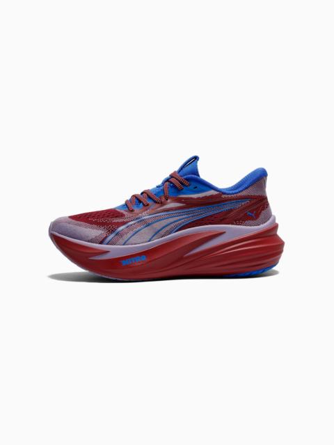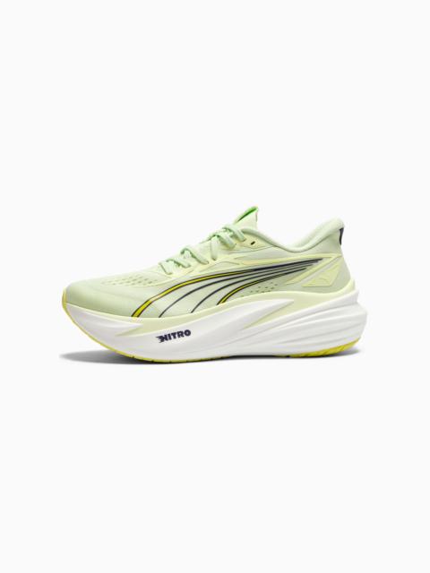 PRODUCT STORY Feel the bounce with the MagMax NITRO™ 2. Packed with the highest stack of NITROFOAM™ cushioning, it delivers an ultra-plush ride that energises every step. The engineered mesh upper keeps things cool and secure, while the PUMAGRIP outsole provides steady traction. Mile after mile, these shoes bring effortless comfort and performance. FEATURES & BENEFITS - The upper of the shoes is made with at least 30% recycled materials. DETAILS - Style: 312125_07 - Color: Warm White-PUMA Black - Width: Regular - Toe Type: Rounded - Fastener: Laces - Heel type: Flat - Stack Height: 46mm / 38mm - Cushioning: Max - Heel-to-toe drop: 8mm - Pronation: Overpronation - Weight: 275g (UK8) MATERIAL INFORMATION - Sockliner: 100% Textile - Outsole: 100% Rubber - Upper: 70.42% Textile, 29.58% Synthetic - Lining: 100% Textile