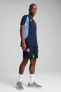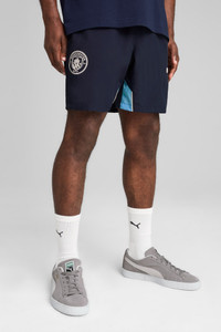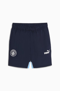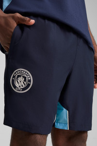PRODUCT STORY Show your pride for the Sky Blues with these retro and stylish shorts. Featuring the Manchester City crest, zip pockets and internal drawcords, they're perfect for every Cityzen. Whether you're at the Etihad Stadium or on the go, carry your love for the club in style with PUMA. FEATURES & BENEFITS - Made with at least 50% recycled materials DETAILS - Style: 779150_73 - Color: PUMA Navy-Team Light Blue - Regular fit - Main material: Plain weave - Above knee length - Medium rise - Zip pockets - Internal drawcords - Manchester City crest placed on the right leg - PUMA Cat logo placed on the left leg MATERIAL INFORMATION - UPPER POCKET BAG: 100% polyester - SHELL: 100% polyester