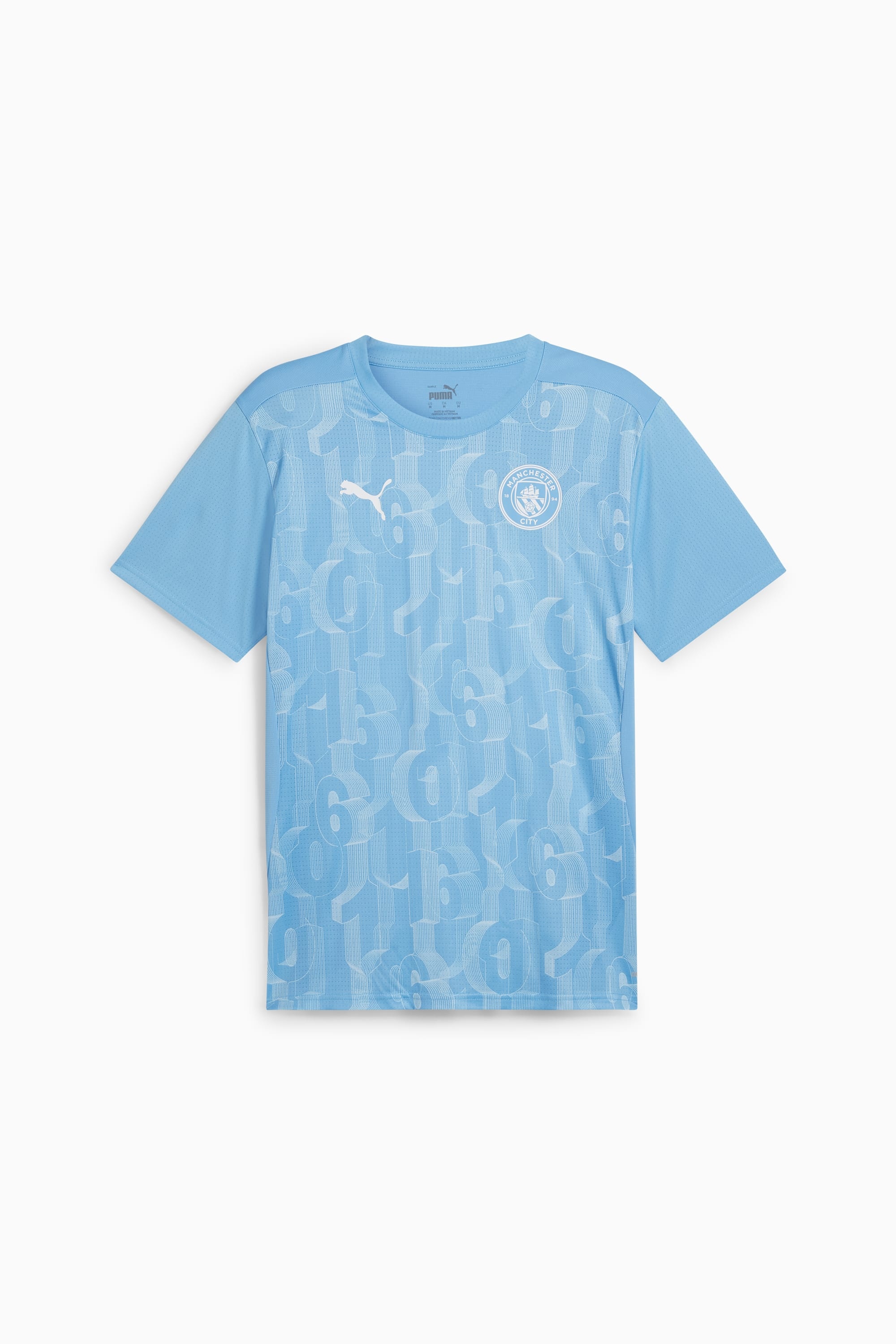 PRODUCT STORY Train like the champions in this official Manchester City Pre-Match Short Sleeve jersey. With a slim-fit, crew neck and our sweat-wicking dryCELL tech, it's tailored for optimal pre-match focus. It features Manchester City details, so you can represent the team with pride. FEATURES & BENEFITS - dryCELL: Performance technology designed to wick moisture from the body and keep you free of sweat during exercise DETAILS - Style: 777578_21 - Color: Team Light Blue-PUMA White - Slim fit - 145 gsm, Knitted - Short sleeve - Official team branding - PUMA branding details MATERIAL INFORMATION - INSERTS: 100% polyester - SHELL: 100% polyester