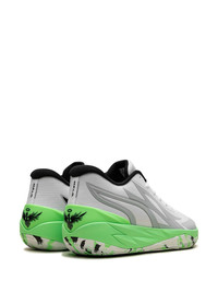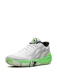 Puma MB.02 Lo "LaMelo's" sneakers PUMA and LaMelo Ball are back with a new edition of the MB.02 sneakers. The "LaMelo's" arrives in a grey and green hue and is constructed with a NITRO foam-infused midsole that mimics LaMelo’s signature wings - a theme that extends onto the engineered woven mesh upper, and full-coverage engineered, nonslip rubber compound with a feather tread pattern for enhanced durability and traction - a nod to Melo’s signature wings as well. Highlights - White/grey/neon green - Colour-block panelled design - Branded heel counter - Logo patch at the tongue - Front lace-up fastening - Round toe - Rubber sole - When buying this unisex item, keep in mind that it is graded in standard men's sizing. - These styles are supplied by a premium and authenticated sneaker marketplace. stocking only the most sought-after footwear, they source and curate some of the most hard to find sneakers from around the world. Imported Composition Sole: Rubber 100% Lining: Fabric 100% Outer: Fabric 100%