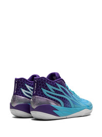 MB.02 Lo "Queen City" sneakers A signature colourway of LaMelo Ball’s second signature shoe, the Puma MB.02 Lo 'Queen City' celebrates the city of Charlotte, North Carolina: home of the Charlotte Hornets. The pair features the team’s uniform colours, while honeycomb patterns appear beneath the “wings” overlay as a nod to patterning seen on the Hornets’ home court. Highlights - Baby blue/grape purple - Mesh design - Gradient effect - Branded heel counter - Logo patch at the tongue - Front lace-up fastening - Round toe - Rubber sole - Release date: july 7, 2023 - These styles are supplied by a premium sneaker marketplace. stocking only the most sought-after footwear, they source and curate some of the most hard to find sneakers from around the world. Imported Composition Sole: Rubber 100% Outer: Mesh 100% Lining: Fabric 100%