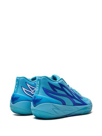 MB.02 "Rookie Of The Year" sneakers The PUMA MB.02 "ROTY" is a tribute to when LaMelo Ball received the 2020-21 Rookie of the Year Award. This model has a high-top silhouette, in a light blue colourway, and is built with a NITRO foam-infused midsole that mimics Melo’s signature wings - which extend onto the engineered woven mesh upper in epic proportion. Made in Italy Composition Other fibres 100%