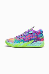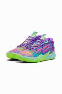 PRODUCT STORY Stand out from the crowd with LaMelo Ball’s latest signature drop, the MB.03 Be You. Featuring interlacing neon patterns and graphics inspired by Melo’s end-to-end skills and “Not From Here” style, the MB.03 Be You makes an impact before you even hit the court. Designed with fast-paced play in mind, the MB.03 Be You features ultra-supportive NITROFOAM™ for stability and comfort when driving the lane, split-second cuts, and taking it coast-to-coast. FEATURES & BENEFITS - NITRO™ Infused: Enclosed nitrogen-infused foam designed to provide responsiveness and cushioning in a lightweight package DETAILS - Style: 379899_01 - Color: Purple Glimmer-KNOCKOUT PINK-Green Gecko - Engineered mesh upper with seamless construction with multi-zoned materials for targeted support, breathability, and comfort - TPU heel counter - NITROFOAM™ midsole - High abrasion non-slip rubber outsole - LaMelo Ball branding MATERIAL INFORMATION - Midsole: 100% Synthetic - Sockliner: 100% Textile - Outsole: 98.30% Rubber, 1.70% Synthetic - Upper: 72.08% Textile, 27.92% Synthetic - Lining: 100% Textile