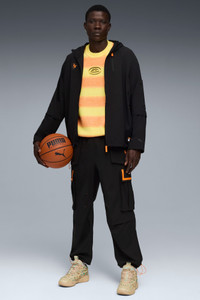 PRODUCT STORY LaMelo Ball is not of this Earth – but fortunately he comes in peace. The MB.04 is inspired by Melo’s otherworldly style of play, with an allover alien texture at the upper and Melo’s wings logo wrapped around the heel. Complete with breathable, supportive double-layered mesh and NITROFOAM™ cushioning for on-court power, this colorway stands out in earth tones and a hot pop of color at the heel. FEATURES & BENEFITS - NITROFOAM™: Advanced nitrogen-injected foam designed to provide superior responsiveness and cushioning in a lightweight package - CMEVA: PUMA's compression-moulded EVA material for lightweight performance DETAILS - Style: 312209_01 - Color: Light Sand-Aquatic-Orange Glo - Woven mesh upper material for breathable feel and support - 5D Printed Upper: A raised, multi-layered design takes over the shoe like alien tentacles - TPU heel counter adds lateral stability, along with LaMelo Branding - High abrasion tread pattern for added traction with non-slip rubber compounds - The outsole features a hovering spaceship, NOT FROM HERE and RARE wording, and flames at the heel - CMEVA foam technology providing superior responsiveness and cushioning in a lightweight package - Unique heel logo: Melo’s own LaFrance logo at the heel - Delivered in exclusive special packaging MATERIAL INFORMATION - Midsole: 100% Synthetic - Sockliner: 100% Textile - Outsole: 100% Rubber - Upper: 59% Synthetic, 41% Textile - Lining: 100% Textile