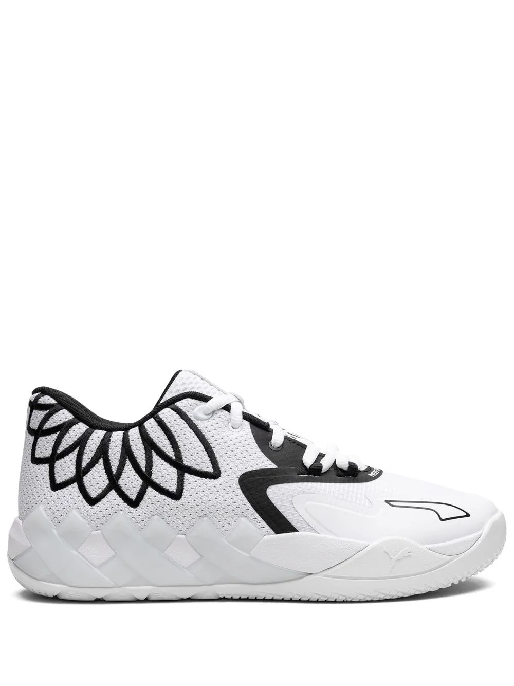 MB1 Lo sneakers Bold just like LaMelo, the American professional basketball player, these PUMA Lamelo Ball MB.01 sneakers arrive in a black and white design highlighted by a contrasting logo at the heel. This high-to sneaker features a statement raised collar and sits atop a rubber sole for comfort and traction. Highlights - Black/white - Mesh panelling - Embroidered logo - Round toe - Front lace-up fastening - Branded insole - Rubber sole - These styles are supplied by a premium sneaker marketplace. stocking only the most sought-after footwear, they source and curate some of the most hard to find sneakers from around the world. Imported Composition Sole: Rubber 100% Outer: Mesh 100%