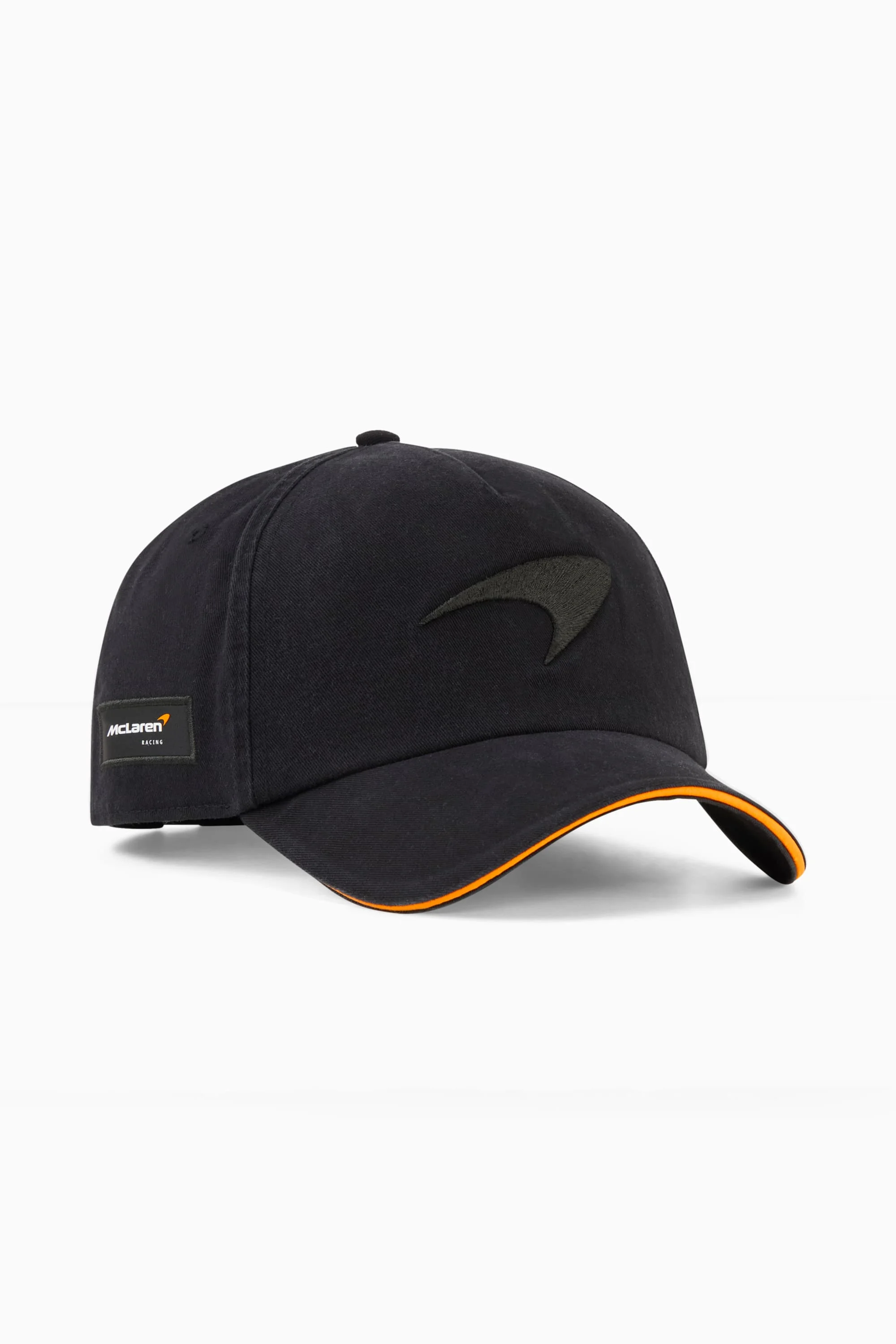 PRODUCT STORY This one’s for the loud ones. The ones who celebrate every corner, every overtake, every win at full volume. Introducing the first ever PUMA x McLAREN RACING Lifestyle Collection. Made for the fans and inspired by the legends they grew up watching, this collection includes a vintage-style track jacket and football-inspired jersey that bring the past roaring into the present. Because when you Race Loud, your look should follow suit. This baseball cap shows off an embroidered McLaren Racing speed mark on the front. FEATURES & BENEFITS - Made with at least 50% recycled materials. DETAILS - Style: 027485_01 - Color: PUMA Black - Five-panel construction - Pre-curved visor - High-profile design - Adjustable snapback closure - PUMA branding details - McLaren Racing branding details MATERIAL INFORMATION - Front Lining: 100% polyester