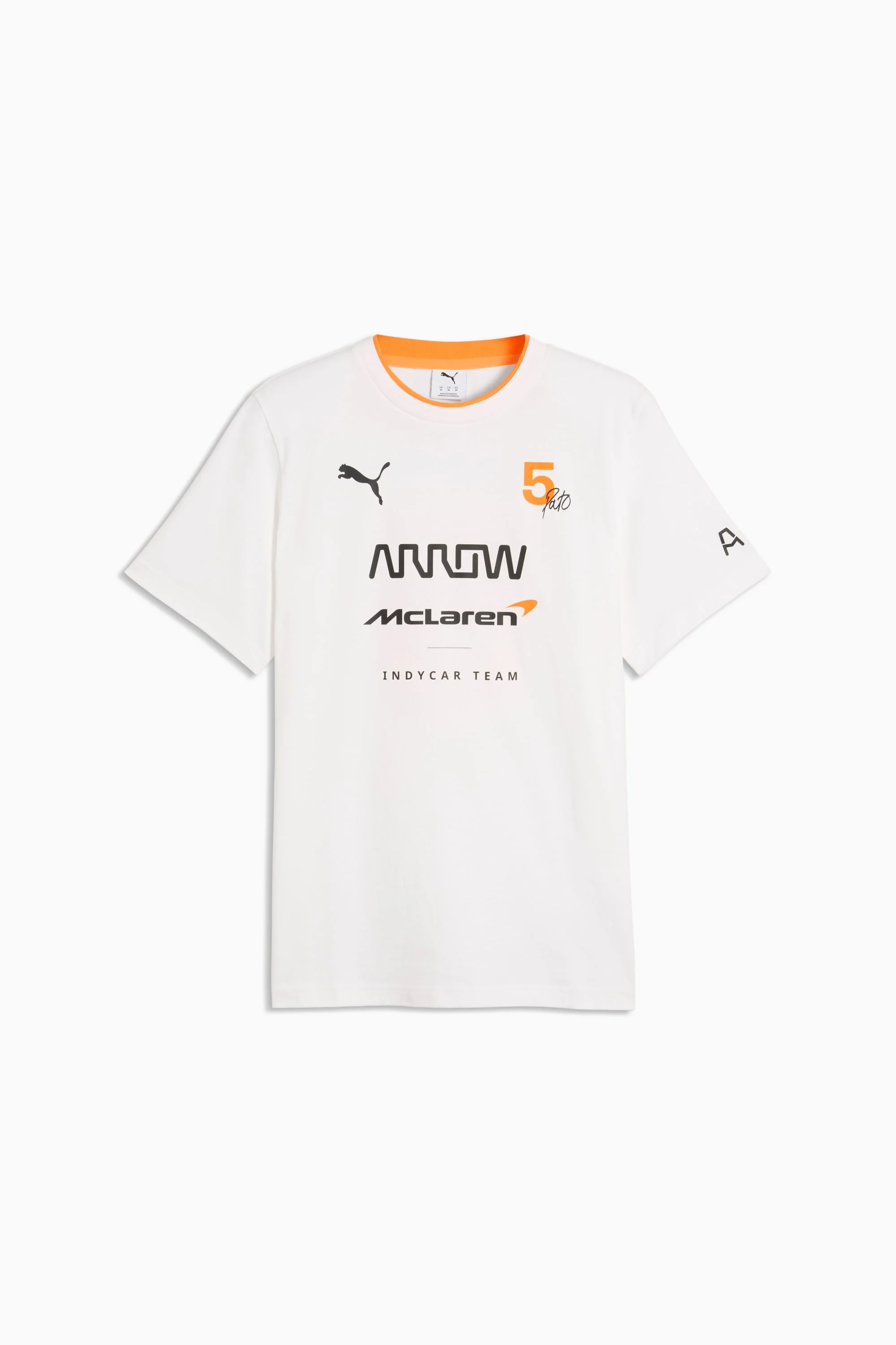PRODUCT STORY Any closer and you’d be in the cockpit. The first ever PUMA x McLAREN RACING Replica Collection puts you one heartbeat away from the grid. Wrapped in papaya and black and headlined by the classic bomber jacket, this debut collection mirrors the range of gear worn by the IndyCar, F1® Academy, and Formula 1® drivers and crew on race day. Whether you're trackside or street-bound, this everyday tee gives you everything you need to show up, stand out, and Race Louder. FEATURES & BENEFITS - Made with at least 20% recycled cotton. DETAILS - Style: 638568_02 - Color: PUMA White - Fit: Regular - Main material type: Single jersey - Neck: Crew neck - Short sleeves - Length: Regular