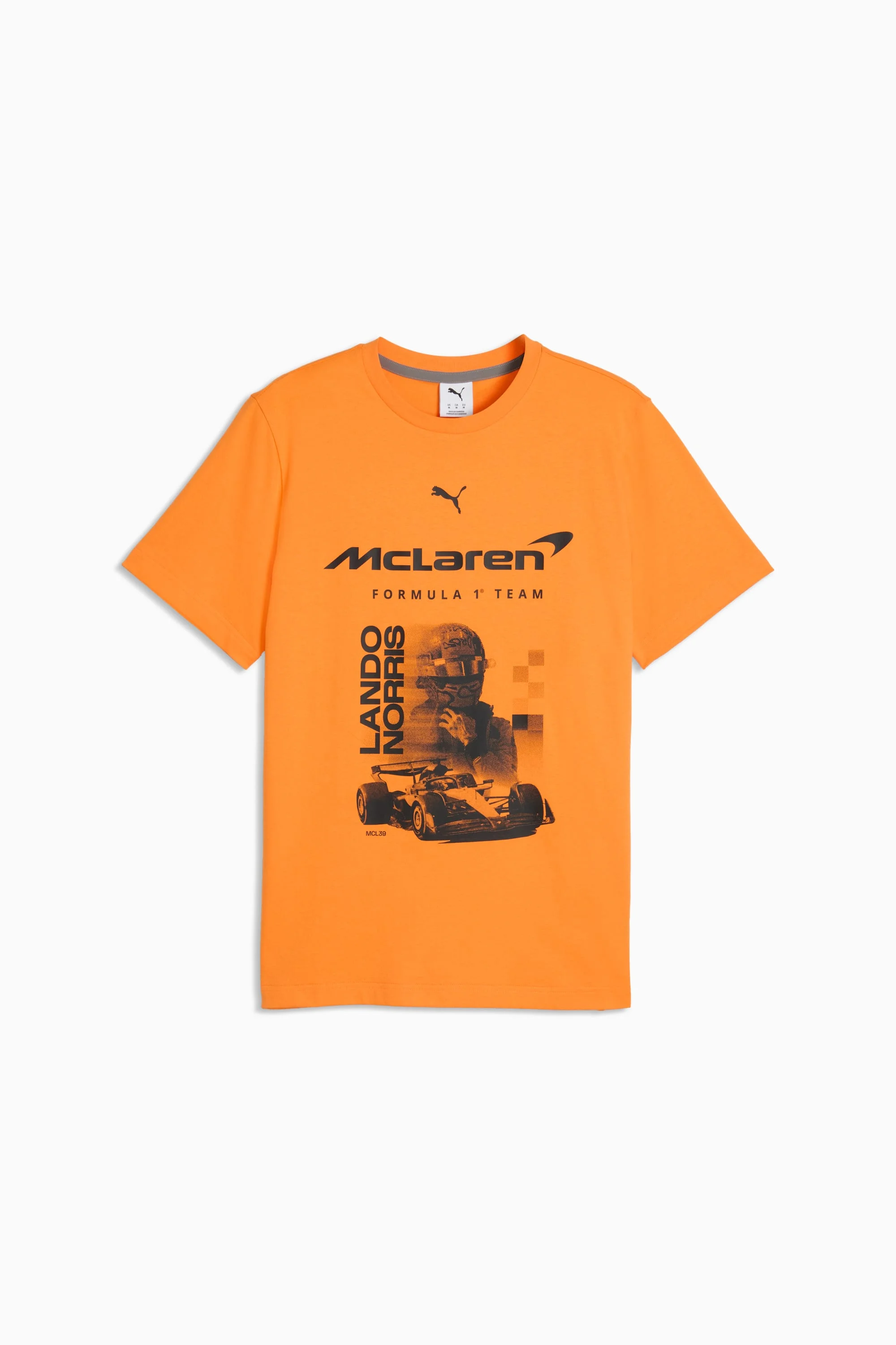 PRODUCT STORY This one’s for the loud ones. The ones who celebrate every corner, every overtake, every win at full volume. Introducing the first ever PUMA x McLAREN RACING Lifestyle Collection. Made for the fans and inspired by the legends they grew up watching, this collection includes a vintage-style track jacket and football-inspired jersey that bring the past roaring into the present. Because when you Race Loud, your look should follow suit. This tee celebrates legendary driver Lando Norris. FEATURES & BENEFITS - Made with at least 20% recycled cotton. DETAILS - Style: 637451_03 - Color: Papaya - Fit: Regular - Main material type: Single jersey - Neck: Crew neck - Short sleeves - Length: Regular - PUMA and McLaren Racing co-branding details MATERIAL INFORMATION - Shell: 100% cotton - Rib: 71% cotton, 29% polyester