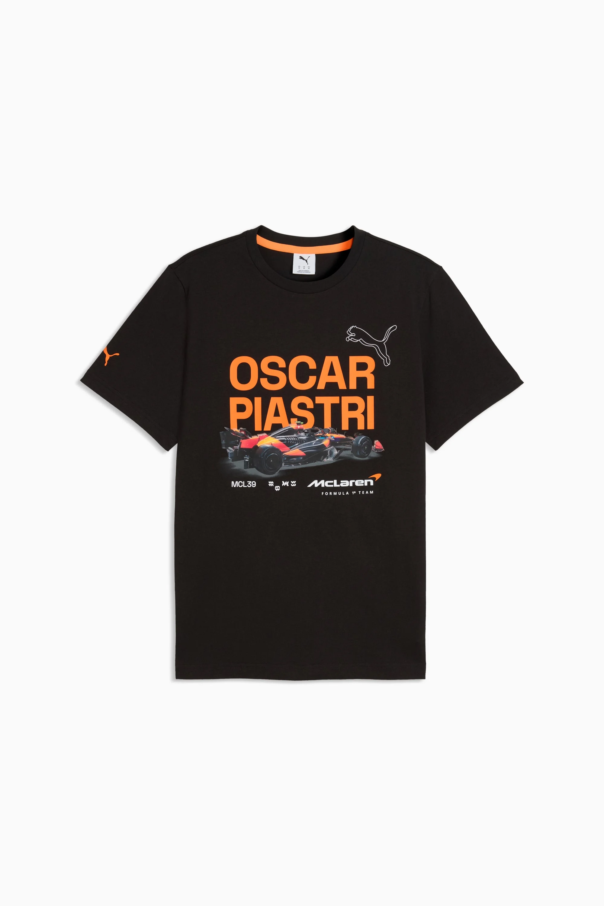 PRODUCT STORY Trackside energy meets everyday comfort. This McLAREN RACING Driver Piastri Tee features bold graphics, iconic McLaren Racing details, and our signature PUMA Cat Logo. Soft fabric keeps you comfortable, whether you're watching the race, heading out, or just living life at full throttle. FEATURES & BENEFITS - Made with at least 20% recycled cotton. DETAILS - Style: 637452_01 - Color: PUMA Black - Fit: Regular - Main material type: Single jersey - Neck: Crew neck - Short sleeves - Length: Regular - Co-branding details MATERIAL INFORMATION - Shell: 100% cotton - Rib: 71% cotton, 29% polyester