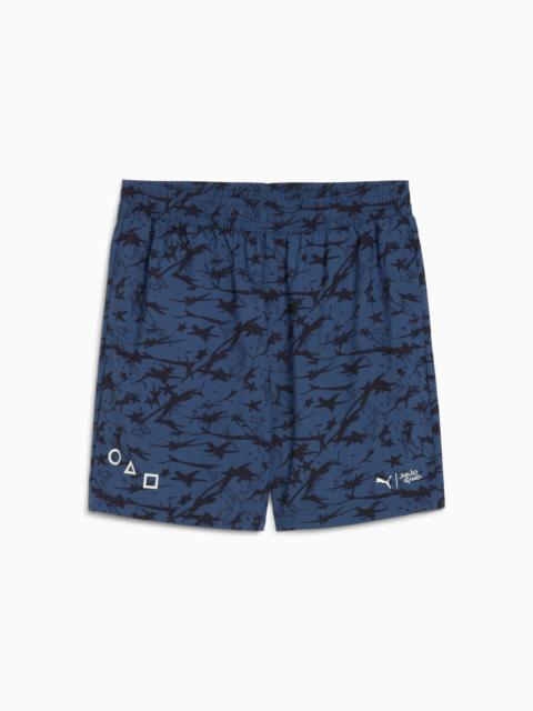 PRODUCT STORY Featuring LaMelo Ball branding and a relaxed fit, these shorts are all about effortless style. Drawcords at the waistband ensure adjustability and comfort. Embrace the vibe and make every moment count. FEATURES & BENEFITS - Made with 100% recycled material excluding trims & decorations DETAILS - Style: 630756_08 - Color: Bright Aqua-AOP - Relaxed fit - Medium rise - Above knee length - Adjustable drawcords at the waistband - LaMelo Ball branding details - PUMA branding details MATERIAL INFORMATION - Shell: 100% polyester - Pocket Bag: 100% polyester