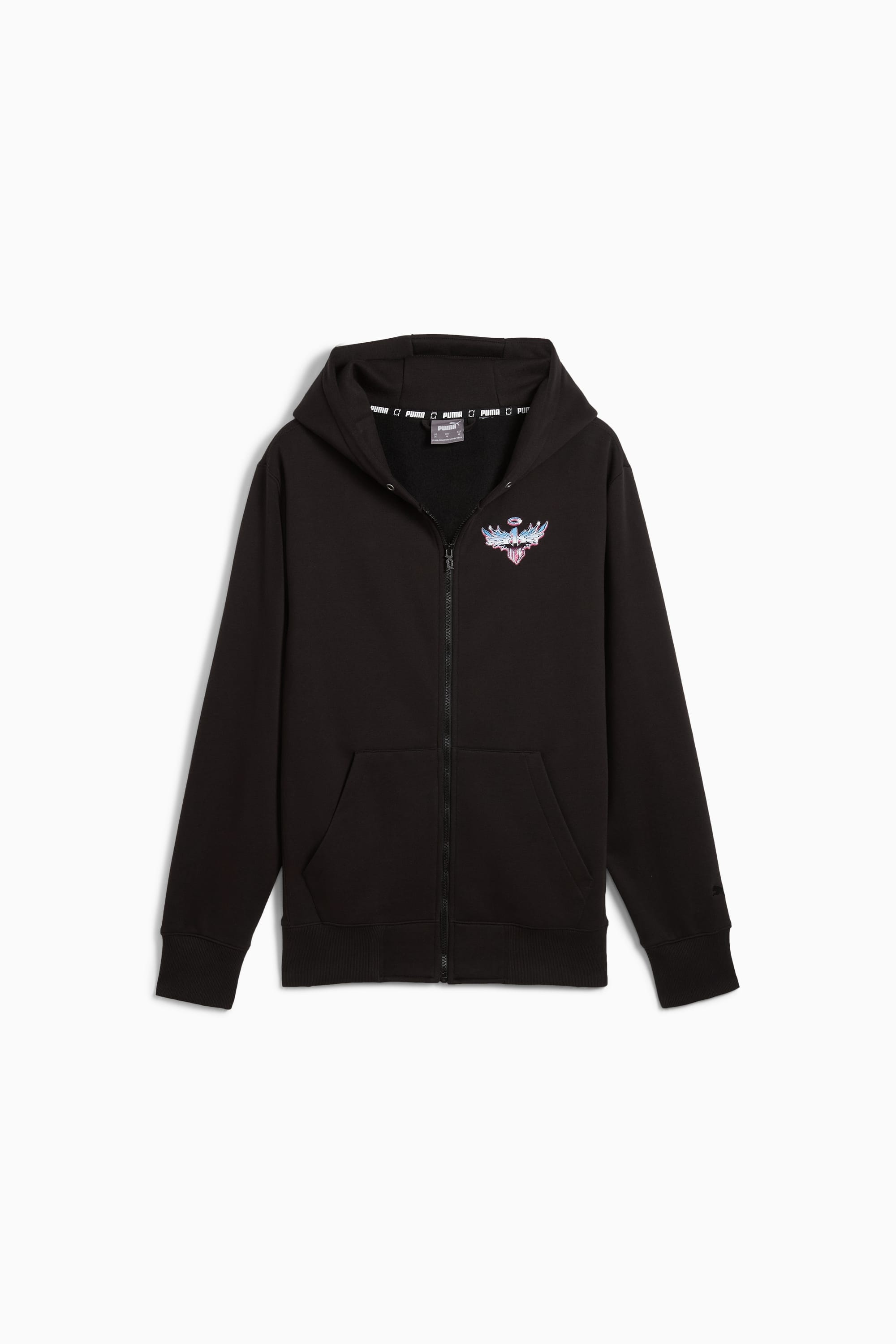 PRODUCT STORY Make a style statement on the court that says game on. This oversized hoodie, with Melo branding and front pocket, keeps you focused and looking fresh. Built for comfort, the long-sleeves have you covered while you nail those threes. Own the game. FEATURES & BENEFITS - Made with at least 30% recycled materials - warmCELL: Breathable cold weather technology designed to trap heat close to your body and keep you warm during exercise DETAILS - Style: 627796_01 - Color: PUMA Black - Regular fit - 280 gsm, fleece - Front pocket - Full zip closure - PUMA branding details MATERIAL INFORMATION - SHELL: 66% cotton, 34% polyester - RIB: 97% cotton, 3% elastane