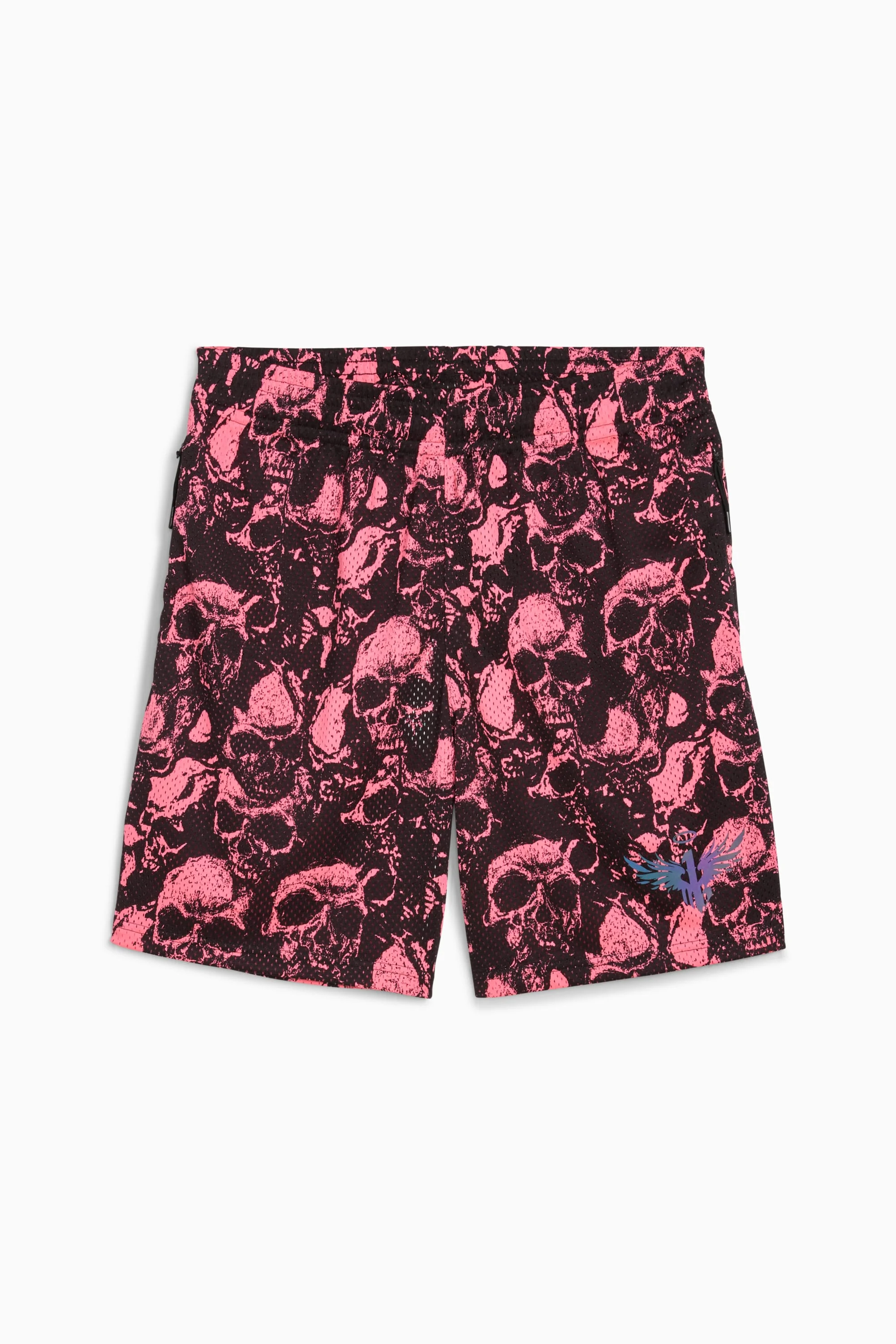 PRODUCT STORY The LaMelo collection by PUMA is a testament to the player's superstar status. Capture some of the magical Melo essence for yourself with these statement pieces that feature bold details and the LaMelo Ball touch. FEATURES & BENEFITS - Made with 100% recycled material excluding trims & decorations DETAILS - Style: 632429_01 - Color: Sun Struck-AOP - Fit: Relaxed - Main material: Mesh - Length: Above-knee length - Rise: Medium - Pockets: Side Pocket - Waistband with drawcords MATERIAL INFORMATION - Pocket Bag: 100% polyester