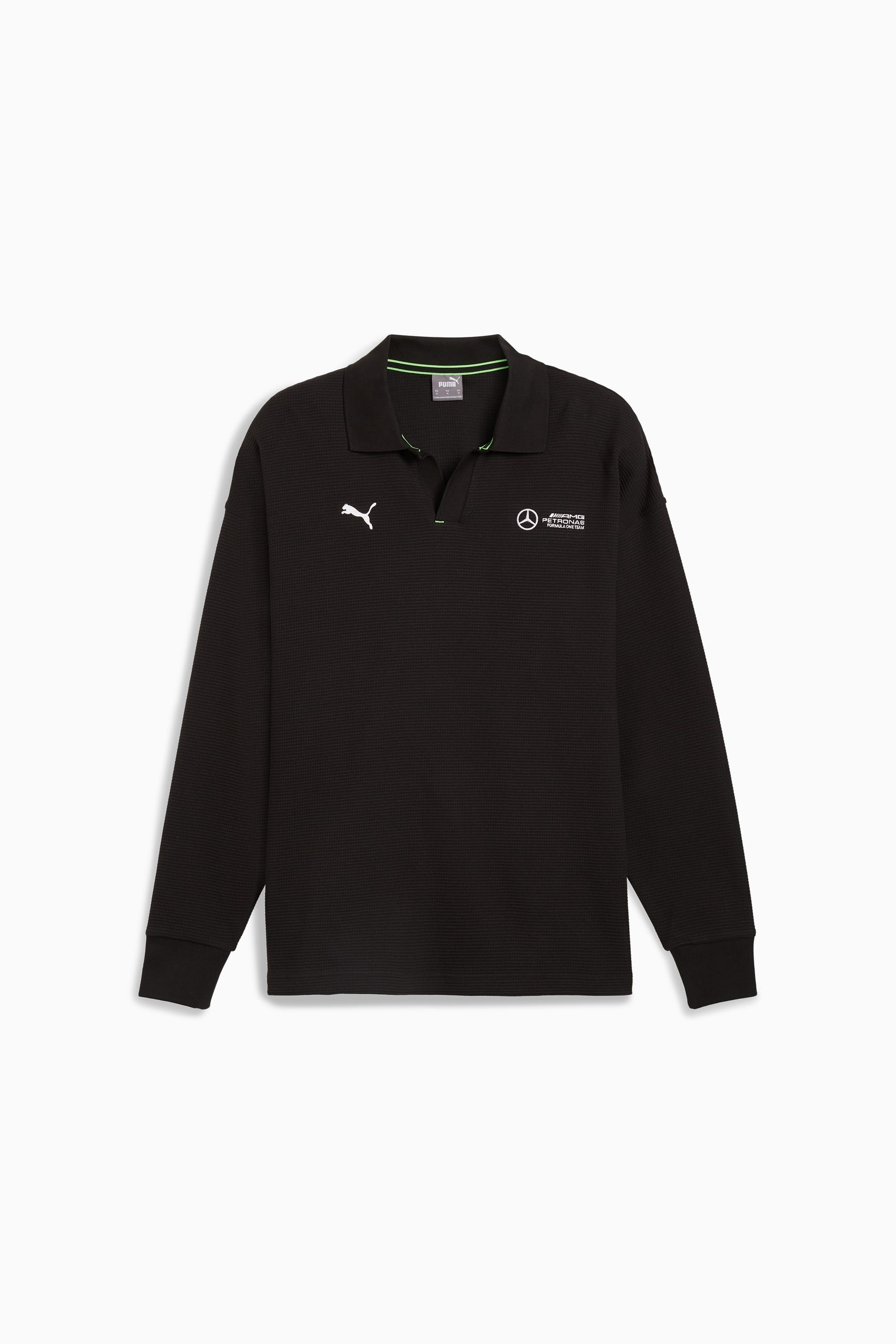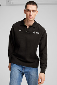PRODUCT STORY Celebrate together in unity. This structured waffle, long-sleeve polo powers your fandom. The Mercedes-AMG Petronas F1® logo and PUMA Cat unite the strength of fans worldwide. Victory is assured. DETAILS - Style: 627339_01 - Color: PUMA Black - Relaxed fit, regular length - 290 gsm, waffle double faced jacquard - Polo collar - Long sleeves - Ribbed cuffs - Mercedes-AMG Petronas F1® logo and PUMA Cat on the chest MATERIAL INFORMATION - SHELL: 79% cotton, 21% polyester - RIB: 100% cotton
