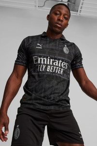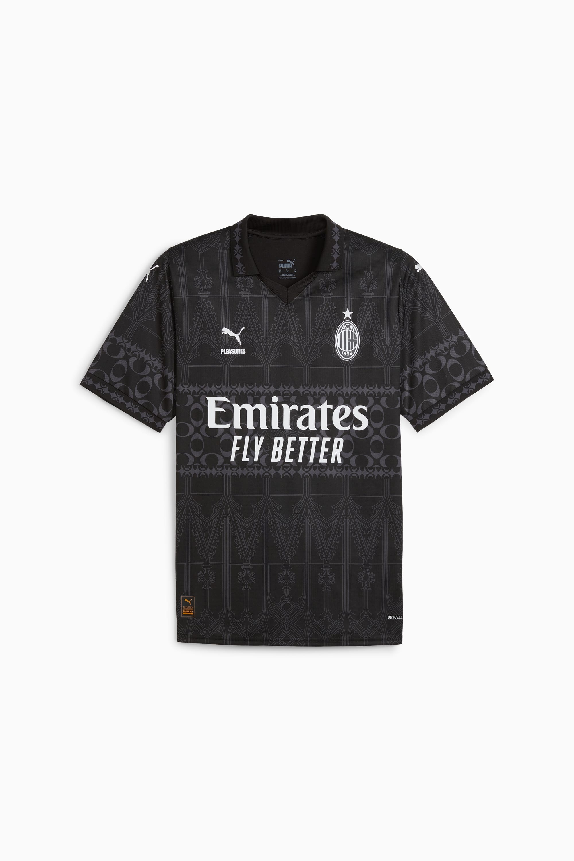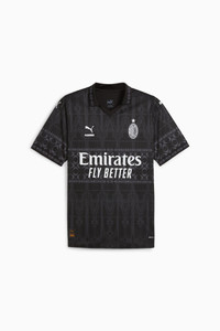 PRODUCT STORY Embrace Milanese class with this replica AC MILAN x PLEASURES jersey for the 23/24 season, a modern fusion of soccer prestige and PLEASURES creativity. This iconic shirt embodies the sporting heritage of AC Milan, combined with the distinctive and modern style of the PLEASURES brand, creating a unique piece that will be worn by the Rossoneri players on the pitch. With geometric patterns and modern details, the shirt celebrates the city's heritage while infusing the club with energy from the streets. FEATURES & BENEFITS - Made with at least 70% recycled material as a step toward a better future. - dryCELL: Performance technology designed to wick moisture from the body and keep you free of sweat during exercise DETAILS - Style: 776064_01 - Color: PUMA Black-Asphalt - Regular Fit - 170 gsm, double face jacquard knit fabric MATERIAL INFORMATION - INSERTS: 97% polyester, 3% elastane - SHELL: 100% polyester - RIB: 97% polyester, 3% elastane