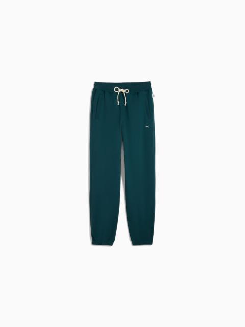 PRODUCT STORY MMQ = "Macht's mit Qualitat." Translated from German, it means "Made with Quality" and represents the best of PUMA's designs and materials. This season, MMQ is back with a new collection of timeless essentials made for city living. Featuring everything from tees to hoodies to jackets, these pieces are functional, durable, and versatile. FEATURES & BENEFITS - Made with at least 20% recycled cotton. DETAILS - Style: 632296_13 - Color: Mountain Blue - Fit: Relaxed - Main material: 450 gsm French Terry - Length: Regular - Elastic cuffs - Rise: Medium - Elasticated ribbed waistband with internal drawcords - Pockets: Side pockets, Back zip pocket MATERIAL INFORMATION - Shell: 100% cotton - Pocket Bag: 100% cotton - Rib: 97% cotton, 3% elastane