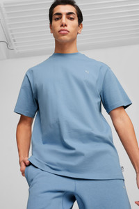 PRODUCT STORY MMQ = “Macht’s mit Qualitat.” Translated from German, it means “Made with Quality” and represents the finest in PUMA’s designs and materials. Minimalistic aesthetics, contemporary silhouettes, with a passion for sophisticated details. This tee reps the aesthetic and is crafted from a dense single jersey fabric and features a small PUMA logo on the chest. FEATURES & BENEFITS - Made with at least 20% recycled cotton DETAILS - Style: 624009_20 - Color: Zen Blue - Air Dry Recommended - Relaxed fit - 250 gsm, single jersey material - Crew neck - Short sleeves - Embroidered PUMA logo on chest MATERIAL INFORMATION - SHELL: 100% cotton - RIB: 74% cotton, 26% polyester