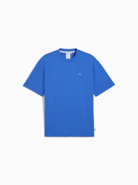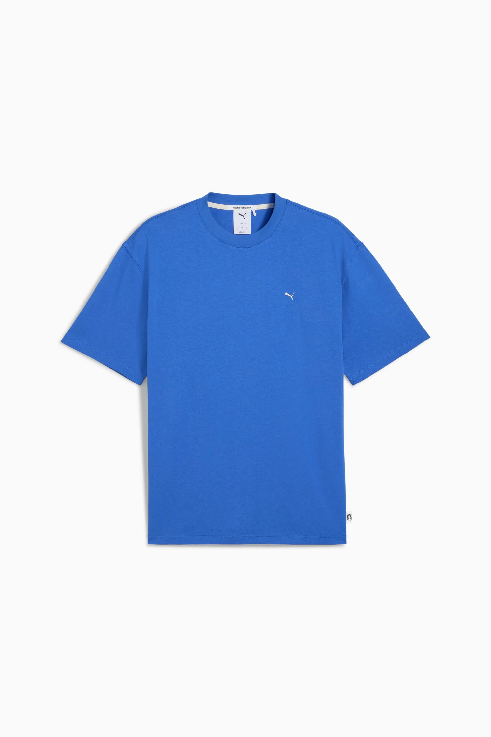 PRODUCT STORY MMQ = "Macht's mit Qualitat." Translated from German, it means "Made with Quality" and represents the best of PUMA's designs and materials. This season, MMQ is back with a new collection of timeless essentials designed for city living. From tees to hoodies to jackets, these pieces are functional, durable, and versatile. FEATURES & BENEFITS - Made with at least 20% recycled cotton. DETAILS - Style: 632298_13 - Color: Mountain Blue - Fit: Relaxed - Main material: Single jersey - 250gsm - Neck: Crew neck - Short sleeves - Length: Regular MATERIAL INFORMATION - Shell: 100% cotton - Rib: 74% cotton, 26% polyester