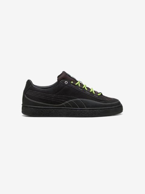 As part of their latest disruptive collection, Puma & Aries introduce the Mostro AC Arise, a modernized take on a classic from Puma's rich heritage: the Mostro. Reinvented with a mixture of mesh, neoprene, and suede on the upper, the Puma & Aries Mostro AC Arise features an elastic closure with an adjustable toggle at the rear to add an extra edge in true Aries style. - Puma Mostro AC Arise x Aries - Mesh & neoprene upper - Suede paneling - Elasticated closure with adjustable toggle - Co-branded detailing - Pull tab on heel counter - Spiked rubber outsole Article no. 399344-01 Gender: UNISEX Color: PUMA Black-Dark Jasper