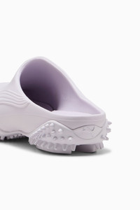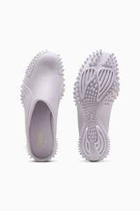 PRODUCT STORY Mostro isn’t a shoe for just anyone. For over two decades it’s been worn by those who defy conventions and eschew the norm. Taking its name from the Italian word for monster, Mostro is a hybrid creation that draws from two diverse realms: the sleek sprinting spikes of the ‘60s and the surfing shoes of the ‘80s. To this day it continues to captivate with its distinctive, sculptural design, low-profile shape, and avant-garde, spiked sole. This version, the Mostro Mule, is crafted with a slip-on construction an comfortable moulded upper. DETAILS - Style: 404433_04 - Color: Lilac Frost - Regular fit - Rounded toe - Molded upper - Moulded leather sockliner - Rubber outsole with spikes as design detail MATERIAL INFORMATION - Outsole: 100% Rubber - Upper: 100% Synthetic - Lining: 100% Synthetic
