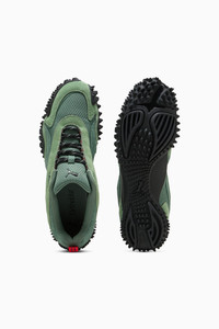 PRODUCT STORY Mostro isn't a shoe for just anyone. For over two decades, it's been worn by those who defy conventions and reject the norm. Taking its name from the Italian word for monster, Mostro is a hybrid creation that draws from two diverse realms: the sleek sprinting spikes of the '60s and the surfing shoes of the '80s. To this day, it continues to captivate with its distinctive, sculptural design, low-profile shape, and avant-garde, spiked sole. This version, the Mostro XC, is an outdoor-inspired take on the original. DETAILS - Style: 402958_02 - Color: Dusty Green-Eucalyptus - Fit: Regular - Toe Type: Rounded - Fastener: Laces - Lining: Mesh - Heel Type: Flat - Midsole: Rubber - Outsole: TPU and rubber - Rubber spikes on the sole as design detail MATERIAL INFORMATION - Sockliner: 100% Textile - Outsole: 60% Rubber, 40% Synthetic - Upper: 70.37% Leather - cow, 28.27% Textile, 1.36% Synthetic - Lining: 100% Textile