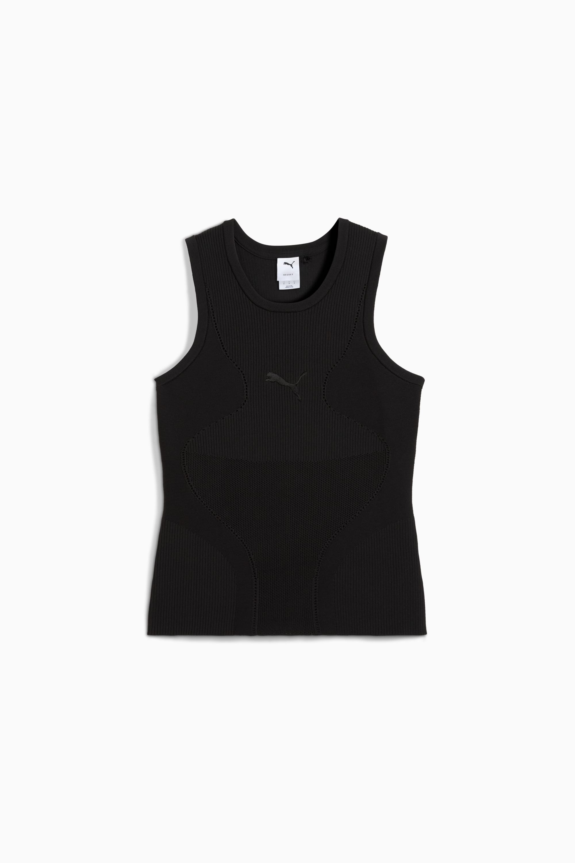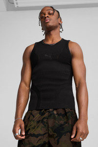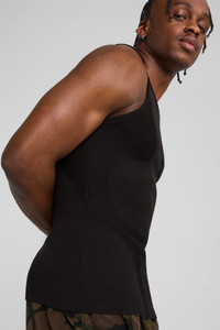 PRODUCT STORY Welcome to Mostroverse. The Mostroverse is all about building an outfit around your new favorite shoes, the Mostro. Part tech, part motorsport, part runway, this tank top features contouring seam details, breathable side patterns, and the iconic PUMA Cat Logo. It's a whole new world out there. FEATURES & BENEFITS - Made with at least 50% recycled materials DETAILS - Style: 629535_01 - Color: PUMA Black - Tight fit - Sweater material - Regular length - Crew neck - Sleeveless - PUMA branding details MATERIAL INFORMATION - Shell: 99% nylon, 1% elastane - Rib: 99% nylon, 1% elastane