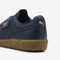 Arriving from deep within the archives, the Puma Palermo from the '70s returns once again coated in premium materials, combining a brand-new luxurious look with signature design elements, such as the sleek low profile, Puma formstrip on the sidewalls and a retro gum rubber outsole. - Puma Palermo Premium - Premium leather upper - Regular fit - Lace closure - Gum rubber outsole Article no. 397246-02 Gender: UNISEX Color: Club Navy-Gum