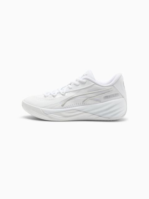 PRODUCT STORY Scoot Henderson is too shifty. Always ahead of the next move, changing gears, quicker than you last saw him. His latest signature performance shoe, the Scoot Zeros II, is inspired by that shifty style of play and the rise and takeover of Scoot’s personal mantra O.D.D (‘Overly Determined to Dominate’). Scoot Zeros II has a sleek, streamlined design packed with cutting-edge technology for exceptional traction, stability, and energy return. Created for gamers and ballers alike, the 2K edition stands out with bold neon colors and a court-ready design. FEATURES & BENEFITS - NITROFOAM™: Advanced nitrogen-infused foam designed to provide superior responsiveness and cushioning in a lightweight package - PWRTAPE: Targeted reinforcement for upper durability and internal reinforcement DETAILS - Style: 311349_01 - Color: Bright Aqua-Feather Gray - Regular width - Lace closure - Lace closure - Rubber outsole with Henderson 7 transmission gears design for speed and agility - Stylish fast eyestay on the upper reflects the spirit and drive of car culture - Scoo logo branding heel badge - PUMA branding details MATERIAL INFORMATION - Midsole: 100% Synthetic - Sockliner: 100% Textile - Outsole: 100% Rubber - Upper: 56.26% Textile, 43.74% Synthetic - Lining: 100% Textile