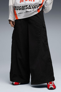 PRODUCT STORY This isn't your parents' nine-to-five. The Nine To Five collection is all about sundown to sun-up, inspired by the golden age of techno in the '90s when experimental music met even more experimental fashion. Today, we honor those all-night trendsetters with this collection of baggy pants, fitted tops, and bold graphics. FEATURES & BENEFITS - windCELL: Technology designed to protect against the wind and keep you comfortable during exercise DETAILS - Style: 632507_01 - Color: PUMA Black - Fit: Oversized - Adjustable bungee drawcords on the hem of the leg - Length: Regular - Rise: Medium - Partially elasticated waistband with button and adjustable sides - Cargo pockets with hook-and-loop closure - Pleats at front MATERIAL INFORMATION - Shell: 100% nylon