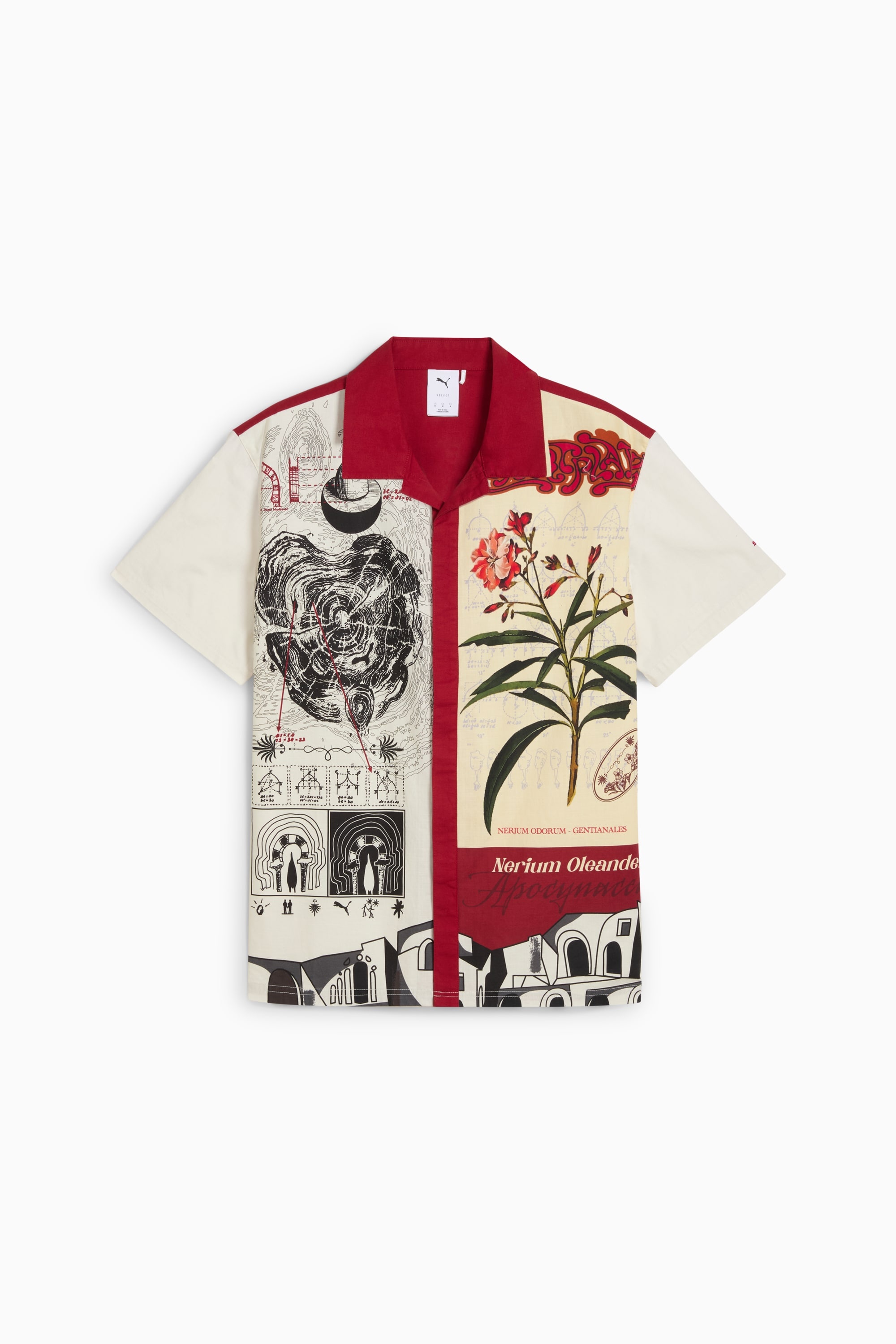 PRODUCT STORY Step into the essence of Morocco with PUMA's Palais Artisan collection. This shirt captures the vibrant spirit of Moroccan culture, blending natural textures with modern streetwear vibes. FEATURES & BENEFITS - Made with at least 20% recycled cotton DETAILS - Style: 629392_87 - Color: Alpine Snow - Relaxed fit - Plain weave fabric - Regular length - Collar - Full placket - Short sleeves - PUMA branding details MATERIAL INFORMATION - BACK BODY: 100% cotton - FRONT BODY: 100% cotton - SHELL: 100% cotton - COLLAR: 100% cotton - SLEEVE: 100% cotton