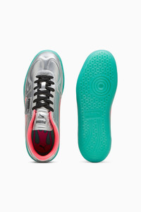 PRODUCT STORY Straight from our archives, it's the PUMA Palermo. This classic terrace shoe debuted in the 80's and now, we've brought it back for the fans. With its signature T-toe construction and classic gum sole, this version has a bold metallic look inspired by Y2K trends and soccer aesthetics. FEATURES & BENEFITS - PUMA's leather products support responsible manufacturing via the Leather Working Group. www.leatherworkinggroup.com DETAILS - Style: 398151_01 - Color: PUMA Silver-Sparkling Green - Leather upper with metallic effect - Textile lining - Mesh sockliner with printed graphic - Rubber midsole - Partially translucent rubber outsole - Leather PUMA Formstrip with "brushed-off" effect MATERIAL INFORMATION - Midsole: 100% Rubber - Sockliner: 100% Textile - Outsole: 100% Rubber - Upper: 99.36% Leather - cow, 0.64% Textile - Lining: 100% Textile