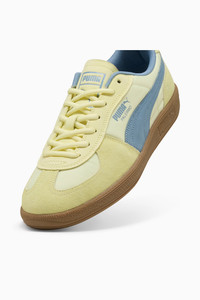PRODUCT STORY Back in the '80s, the Palermo was a fan favorite in British soccer stadiums, instantly recognizable for its pops of color and classic gum sole. Today, the Palermo has evolved from an icon of soccer culture to a nostalgic streetwear staple, ready for game day and every day. DETAILS - Style: 403257_02 - Color: Gold Moon-Cool Blue - Width: Regular - Toe Type: Rounded - Fastener: Laces - Heel type: Flat - PUMA branding details
