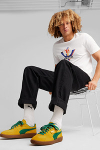 PRODUCT STORY A terrace legend from our archives returns: The Palermo. The silhouette debuted back in the early '80s, where it quickly became a staple among the terrace crowds in British soccer stadiums. Now, we’ve brought it back for the fans. Like the original, the Palermo is complete with its signature tag at the upper, a T-toe construction, and, of course, the classic gum sole. This version has a suede base and leather Formstrip with foil-printed PUMA branding. FEATURES & BENEFITS - PUMA’s leather products support responsible manufacturing via the Leather Working Group.www.leatherworkinggroup.com DETAILS - Style: 396463_12 - Color: Pele Yellow-Yellow Sizzle-Archive Green - Leather upper with suede base - Suede tongue and debossed PUMA branded label and mesh backing - Synthetic lining - Synthetic sockliner - Rubber midsole - Rubber outsole MATERIAL INFORMATION - Midsole: 100% Synthetic - Sockliner: 100% Textile - Outsole: 100% Rubber - Upper: 99.36% Leather - cow, 0.64% Synthetic - Lining: 64.66% Synthetic, 35.34% Textile