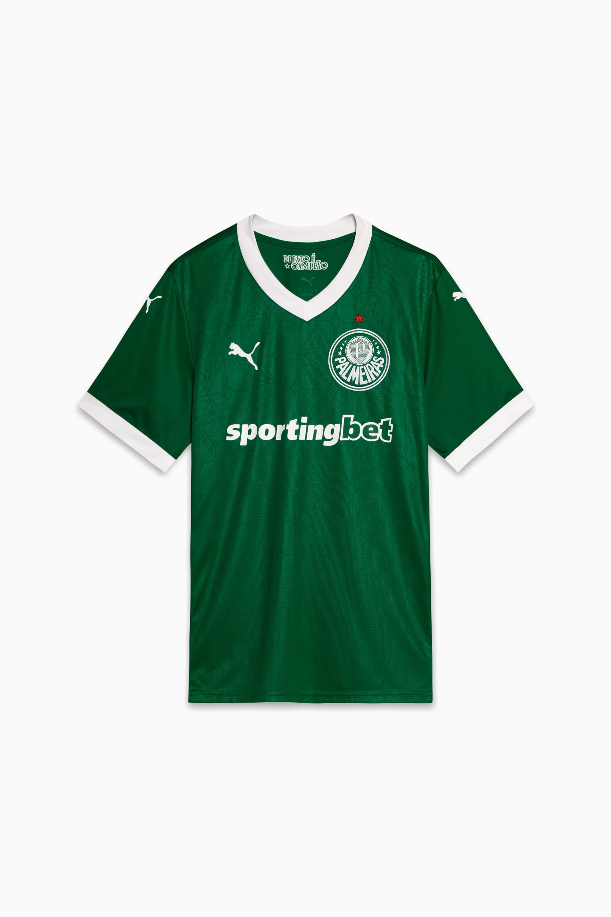 PRODUCT STORY Take control of the game with ULTRAWEAVE fabric designed for lightweight movement. Featuring dryCELL technology, this jersey keeps you cool whether you're cheering in the stands or playing on the field. Mesh side panels provide added breathability, while bold team branding showcases your Palmeiras pride. Play with passion, powered by PUMA. FEATURES & BENEFITS - dryCELL: Performance technology designed to wick moisture from the body and keep you free of sweat during exercise DETAILS - Style: 782426_01 - Color: Power Green - Fit: Regular - Neck: Crew - Short sleeves MATERIAL INFORMATION - Shell: 100% polyester