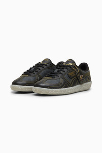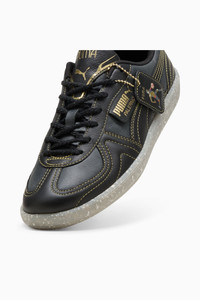 PRODUCT STORY Straight from our archives, it's the PUMA Palermo. This classic terrace shoe debuted in the 80's and now, we've brought it back for the fans. With its signature T-toe construction and classic gum sole, this version features a suede base and a signature PUMA Formstrip in leather. DETAILS - Style: 401088_01 - Color: PUMA Black-Flat Light Gray - Regular fit - Leather upper - Tumbled leather overlays - Mesh lining - Cotton waxed laces - Synthetic midsole - Rubber outsole - PUMA branding details MATERIAL INFORMATION - Midsole: 100% Synthetic - Sockliner: 100% Textile - Outsole: 100% Rubber - Upper: 99.36% Leather - cow, 0.64% Textile - Lining: 100% Textile