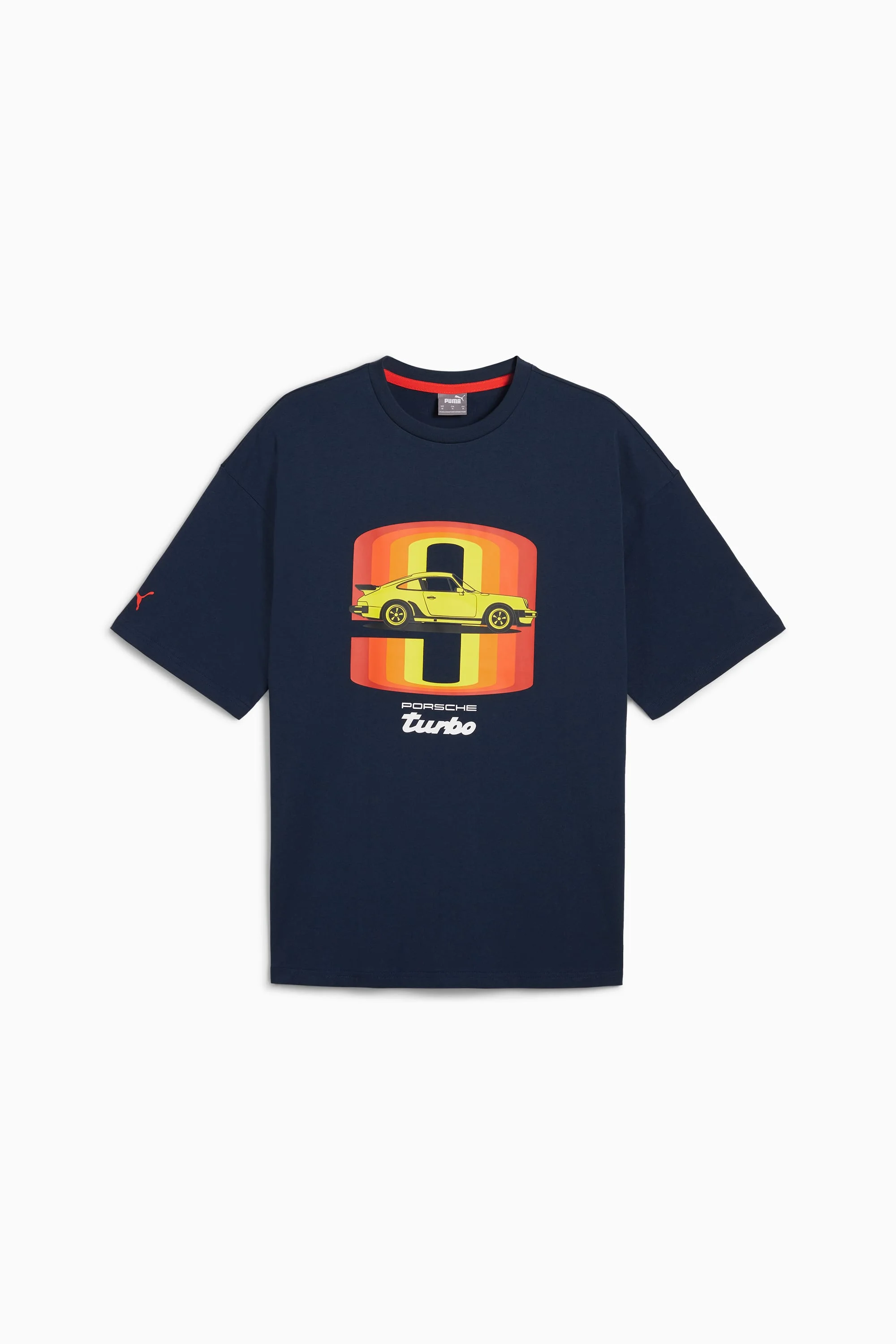 PRODUCT STORY Hit the road in style wearing this bold graphic tee inspired by Porsche's iconic 911 Turbo. Accelerate your casual looks with a striking seasonal graphic, oversized fit, and PUMA Cat on the sleeve. Display your passion for high performance wherever the open road takes you. FEATURES & BENEFITS - Made with at least 20% recycled cotton DETAILS - Style: 626379_03 - Color: Club Navy - Oversized fit, regular length - 210 gsm, single jersey - Crew neck - Short sleeves - Large Porsche Turbo seasonal graphic on the centre front - PUMA Cat on the right sleeve MATERIAL INFORMATION - Shell: 100% cotton - Rib: 70% cotton, 30% polyester