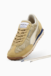 PRODUCT STORY These new Porsche Legacy pieces pay tribute to the brand's iconic motorsport heritage, combining premium materials with timeless design. This version of the Easy Rider comes with fresh colours and retro running vibes, ready to be remixed and reinterpreted by a new generation. DETAILS - Style: 309088_02 - Color: Coffee Milk-Alpine Snow - Width: Regular - Toe type: Rounded - Closure: Laces - Heel type: Flat - PUMA branding details - Porsche Legacy branding details MATERIAL INFORMATION - Sockliner: 100% Textile - Outsole: 100% Rubber - Upper: 56.94% Leather - cow, 33.32% Textile, 9.74% Synthetic - Lining: 100% Textile