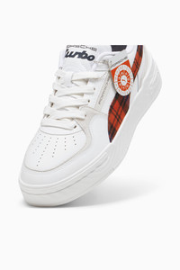 PRODUCT STORY Inspired by the PUMA California style, released in the 1980s, the Porsche Legacy CA Pro brings motorsport to the streets. This Porsche Legacy version is truly a timeless style with a unique touch of Porsche Legacy signature colors and tartan details. FEATURES & BENEFITS - The upper of the shoes is made with at least 20% recycled materials DETAILS - Style: 308418_01 - Color: PUMA White-Redmazing - Regular fit - Leather and synthetic upper - Mesh lining - Lace closure - PUMA and PORSCHE LEGACY branding details