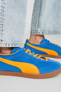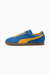 PRODUCT STORY The PUMA Brasil was originally created in the '70s for Brazil's greatest soccer legend. Today the icon from our archives makes its return, complete with its classic cupsole silhouette and soccer cred. Featuring the well-known colors that made it famous, this new version is a true testament to timeless design and enduring style. Whether you're a die-hard fan of soccer's golden era or a trendsetter looking to make a statement, this shoe is sure to capture your attention. DETAILS - Style: 401048_04 - Color: Vivid Blue-Tangerine - Regular width - Suede upper - Lace closure - Breathable synthetic lining - OrthoLite® canvas insole - PUMA branding details MATERIAL INFORMATION - Sockliner: 100% Textile - Outsole: 100% Rubber - Upper: 100% Leather - cow - Lining: 69.52% Textile, 30.48% Synthetic