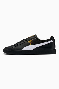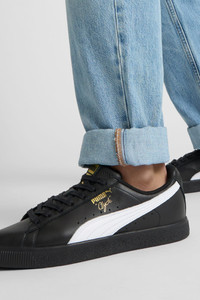 Pay tribute to a legend in this gold edition Clyde. Inspired by the legend himself, we created the PUMA Clyde back in 1973 just for basketball icon Walt "Clyde Frazier". Known for his on-court playstyle and off-court street style, the Clyde is all class and flash. This version is updated with gold foil branding and a premium leather upper. DETAILS - Style: 364669_04 - Color: Puma Black-Puma White-Puma Team Gold - Classic Clyde silhouette - Full leather upper - Flat lace closure for snug fit - Rubber outsole provides durable grip and traction - Contrast PUMA Formstrip overlay at side - Gold metallic PUMA Clyde callout at side - Gold foil PUMA label at tongue MATERIAL INFORMATION - Outsole: 100% Rubber - Upper: 100% Leather