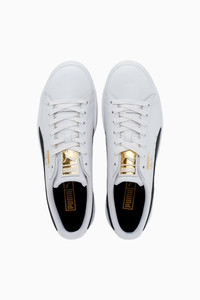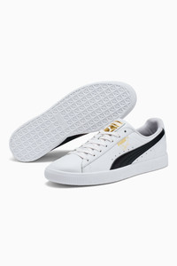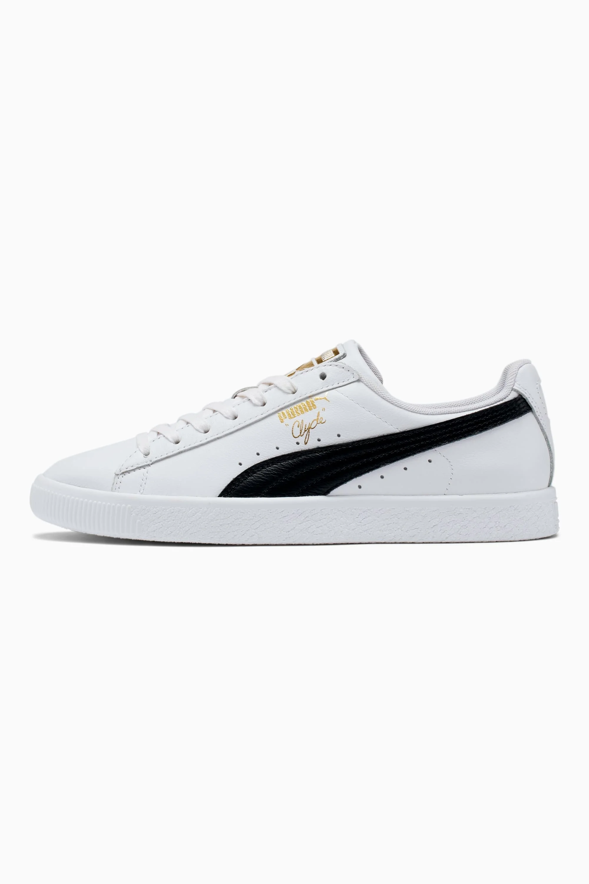Pay tribute to a legend in this gold edition Clyde. Inspired by the legend himself, we created the PUMA Clyde back in 1973 just for basketball icon Walt "Clyde Frazier". Known for his on-court playstyle and off-court street style, the Clyde is all class and flash. This version is updated with gold foil branding and a premium leather upper. DETAILS - Style: 364669_01 - Color: Puma White-Puma Black-Puma Team Gold - Classic Clyde silhouette - Full leather upper - Flat lace closure for snug fit - Rubber outsole provides durable grip and traction - Contrast PUMA Formstrip overlay at side - Gold metallic PUMA Clyde callout at side - Gold foil PUMA label at tongue MATERIAL INFORMATION - Outsole: 100% Rubber - Upper: 100% Leather