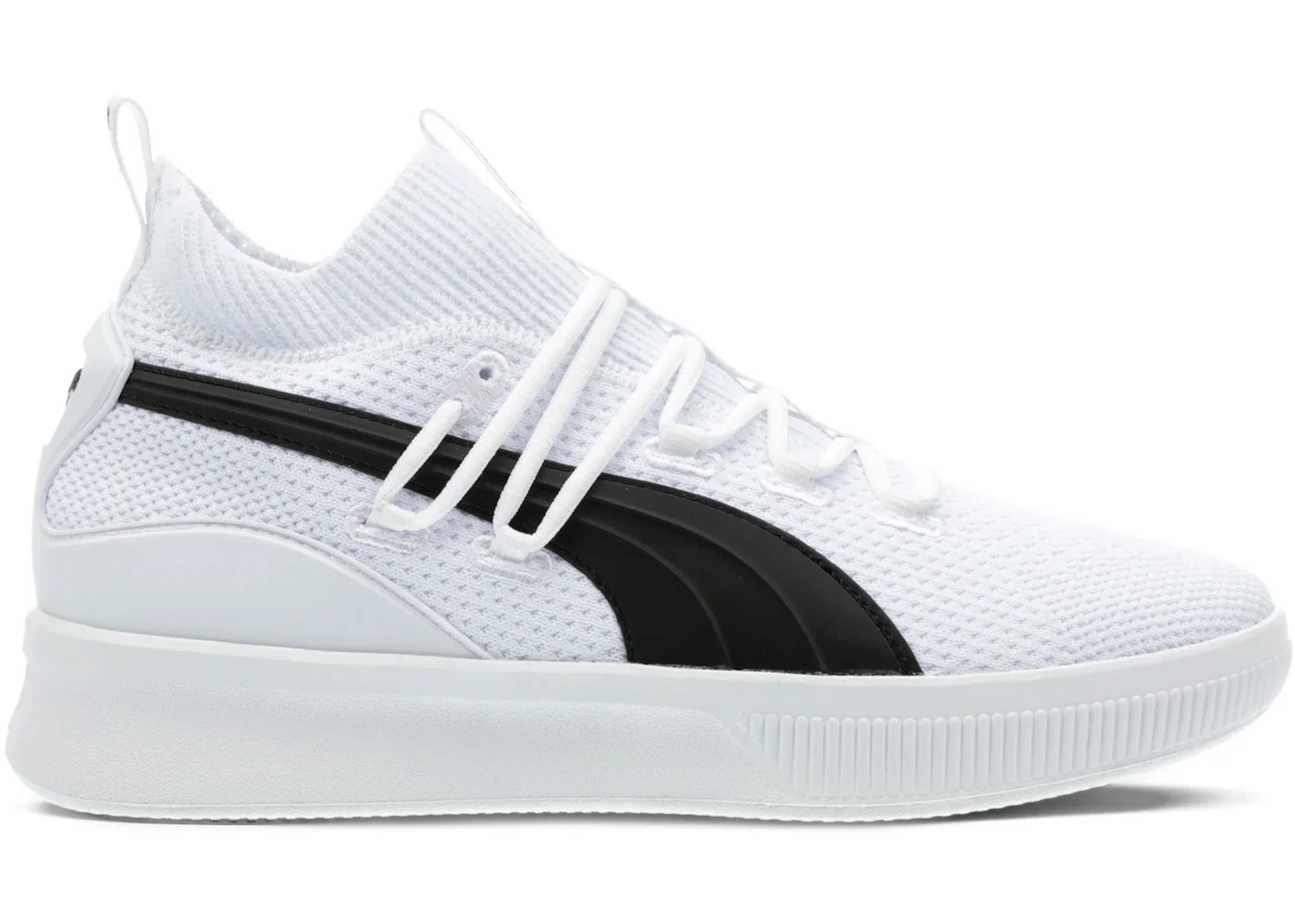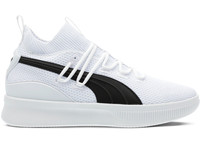 The Puma Clyde Court City Pack Brooklyn Nets is a shoe that was released in celebration of the NBA draft and pays homage to Brooklyn, one of five cities in the Puma "City Pack." The upper of this sneaker that celebrates the Brooklyn Nets features white knit with an inner booty sleeve that hugs your foot with a sock-like feel. A black side panel stripe courses from the heel to the mudguard, and a white heel counter helps improve foot stability. Puma branding hits the tongue and heel tab, and the heel pull loop sports "1973," the year Puma launches the Clyde silhouette. The thick white foam midsole provides springy cushion and rests atop of white rubber outsole with triangular-shaped lugs for traction on the forefoot and rear foot. The aspect of this sneaker that makes it stand out is its uniquely lacing system, where the top-most laces stretch all the way across the midfoot for a firmer lockdown feel. The Puma Clyde Court City Pack Brooklyn Nets was released on June 20, 2019 for an original retail price of $120. - Style 191712-11 - Colorway Puma White/Puma Black - Retail Price 120 - Release Date 2019-06-20 - Featured false