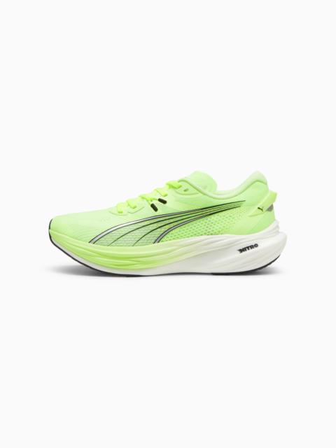 Optimized for a wide range of foot strikes and patterns, Deviate 3 is a super-fast, ultra-responsive running shoe for any runner. Engineered with the perfect combination of nitrogen-infused NITROFOAM™ for maximum energy return and PWRPLATE technology for responsiveness, the Deviate 3 provides best-in-class cushioning for a strong, snappy, and comfortable ride at any pace for any runner. Discover speed you didn’t even know you had with the Deviate 3 – and propel yourself to your next PB. FEATURES & BENEFITS - The upper of the shoes is made with at least 20% recycled materials - NITROFOAM™: Advanced nitrogen-infused foam designed to provide superior responsiveness and cushioning in a lightweight package - PWRPLATE: Carbon fibre plate engineered to stabilise the midsole while maximising energy transfer DETAILS - Style: 309707_26 - Color: Dusky Gray-Heat Fire - Regular fit - Engineered mesh upper - Stack height: 39mm/29mm - Weight: 250g (size UK8) - Heel-to-toe drop: 10mm - Recommended for: neutral pronators MATERIAL INFORMATION - Midsole: 100% Synthetic - Sockliner: 100% Textile - Outsole: 100% Rubber - Upper: 73% Textile, 27% Synthetic - Lining: 100% Textile