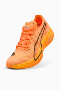 PRODUCT STORY Hit turbo speed. The Deviate NITRO™ Elite 3 is a running shoe redesigned for lightweight, race day propulsion. A carbon fibre PWRPLATE ensures stability and maximum running efficiency, while NITROFOAM™ ELITE offers supreme cushioning that won't weigh you down. It's a running go-to made with lightweight mono-mesh and durable PUMAGRIP rubber for multi-surface traction and an effortless run. FEATURES & BENEFITS - NITROFOAM™ ELITE: Premium performance foam technology that provides pinnacle responsiveness in an extremely lightweight package - PWRPLATE: Carbon fibre plate engineered to stabilise the midsole while maximising energy transfer - ULTRAWEAVE: Ultra-light, engineered fabric with a structured, 4-way stretch that reduces weight and friction. Built for athletes looking to increase speed and strength DETAILS - Style: 309809_09 - Color: Heat Fire-PUMA Black - Regular fit - ULTRAWEAVE upper - Stack height: 40mm/32mm - Weight: 194g (size UK8) - Heel-to-toe drop: 8mm - Recommended for: neutral pronators