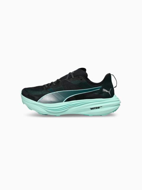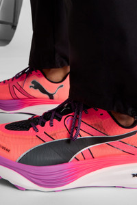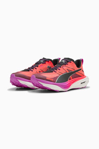 PRODUCT STORY The Deviate Elite Trail is an all-new high-performance running shoe designed for trail running. Take your route off-road with the Deviate Elite Trail’s rugged design and ready-for-anything details. Dominate the course with NITROFOAM™ ELITE and PWRPLATE tech that’s trail-tested for optimal energy return, cushioning, and comfort. From speed work on local trails to that race day moment, the Deviate Elite Trail can handle whatever you throw at it. FEATURES & BENEFITS - The upper of the shoes is made with at least 20% recycled materials - NITROFOAM™ Elite Cushioning: Innovative Nitrogen-infused foam technology that uses premium raw materials for maximal energy return on race day - PUMAGRIP ATR: Trail-ready performance rubber compound designed for traction on ice, mud, and unstable surfaces - PWRPLATE: Carbon fibre plate engineered to stabilise the midsole while maximising energy transfer DETAILS - Style: 310034_02 - Color: Glowing Red-PUMA Black-Pure Magenta - ULTRAWEAVE upper - Shoe weight: 245g (UK size 8) - Heel-to-toe drop: 6mm - Recommended for: neutral pronators - PUMA branding details MATERIAL INFORMATION - Midsole: 100% Synthetic - Sockliner: 100% Textile - Outsole: 100% Rubber - Upper: 63% Textile, 37% Synthetic - Lining: 100% Textile