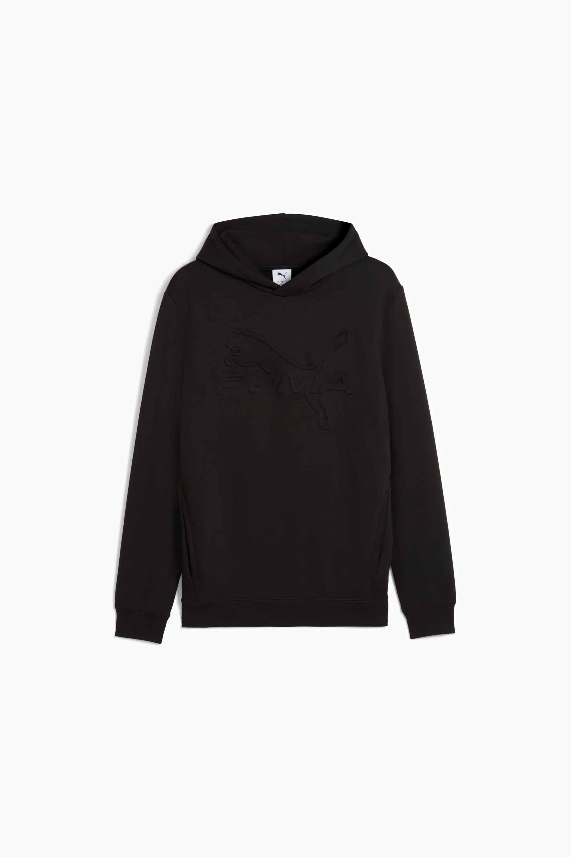 PRODUCT STORY Stylish, comfortable, and always on point — PUMA Essentials are designed for relaxed days. Whether you're lounging, grabbing a coffee, or staying on the go, these pieces deliver the perfect mix of comfort and style. Simple, versatile, and made to keep you feeling great all day long. FEATURES & BENEFITS - Made with at least 50% recycled materials DETAILS - Style: 690423_01 - Color: PUMA Black - Fit: Regular - Main Material: Fleece - Neck: Crew neck - Long sleeves - Hooded with drawcord - Length: Regular - Ribbed cuffs MATERIAL INFORMATION - Hood Lining: 100% cotton - Shell: 66% cotton, 34% polyester - Rib: 97% cotton, 3% elastane