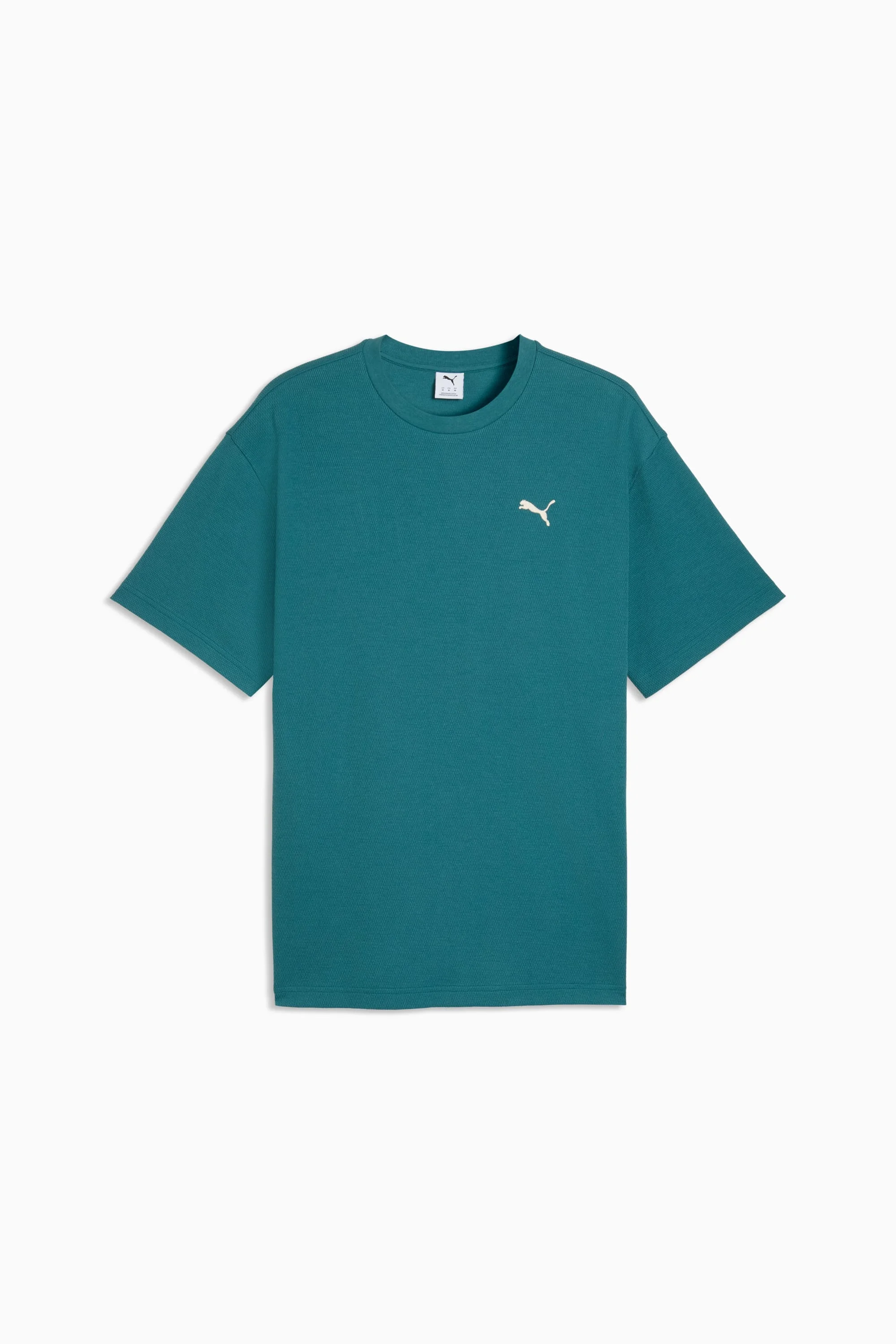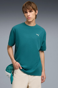 PRODUCT STORY Comfortable feel, effortless style—PUMA Essentials Elevated takes everyday comfort up a notch. With sport-inspired details and a perfect fit, these pieces bring a refined touch to your go-to essentials. Casual yet always on point—because everyday style should feel this good. FEATURES & BENEFITS - Made with at least 30% recycled materials. DETAILS - Style: 692018_41 - Color: Emerald Ice - Fit: Relaxed - Main material type: Mesh - Neck: Crew neck - Short sleeves - Length: Regular - PUMA Cat logo embroidery MATERIAL INFORMATION - Lining: 60% cotton, 40% polyester - Shell: 60% cotton, 40% polyester - Rib: 58% cotton, 39% polyester, 3% elastane